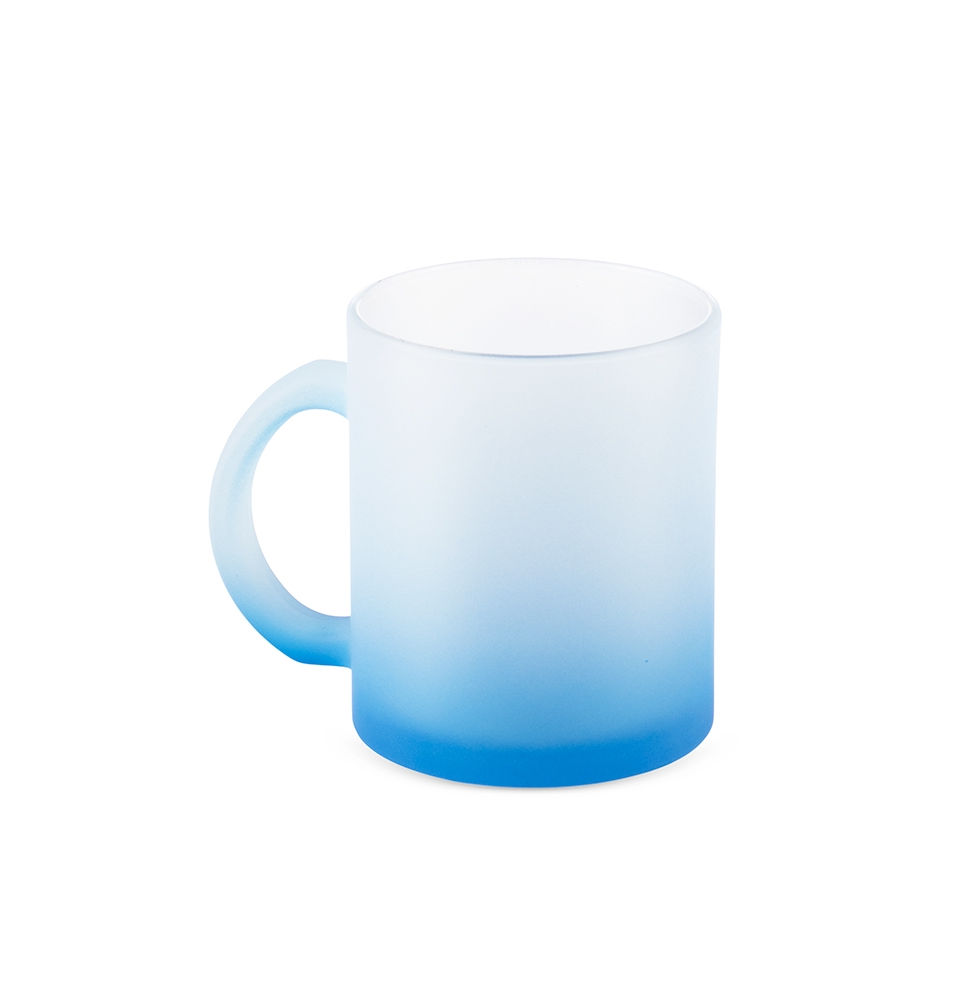 Caneca em vidro com acabamento fosco degradê e capacidade para até 350ml.