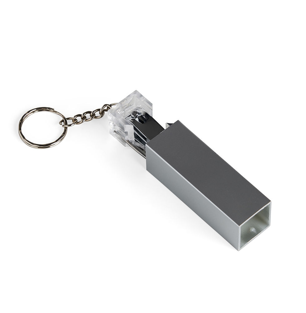 Chaveiro kit manicure 4 peças em estojo plástico. Possui lixa, pinça, empurrador de cutícula e cortador de unha preso. Estojo com berço plástico para acomodação das peças.